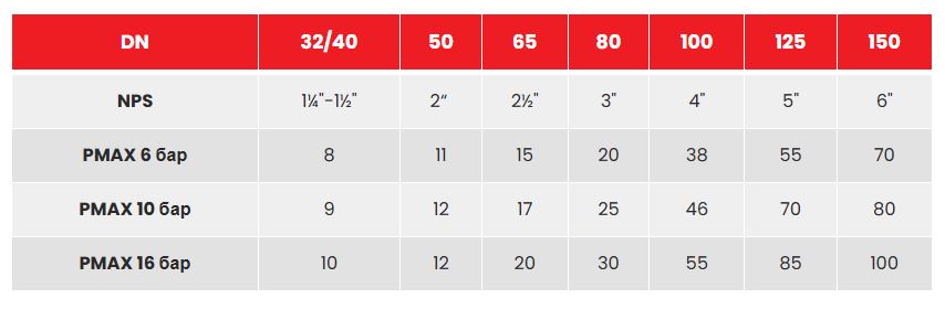 Робочий тиск: 6 бар /10 бар /16 бар;