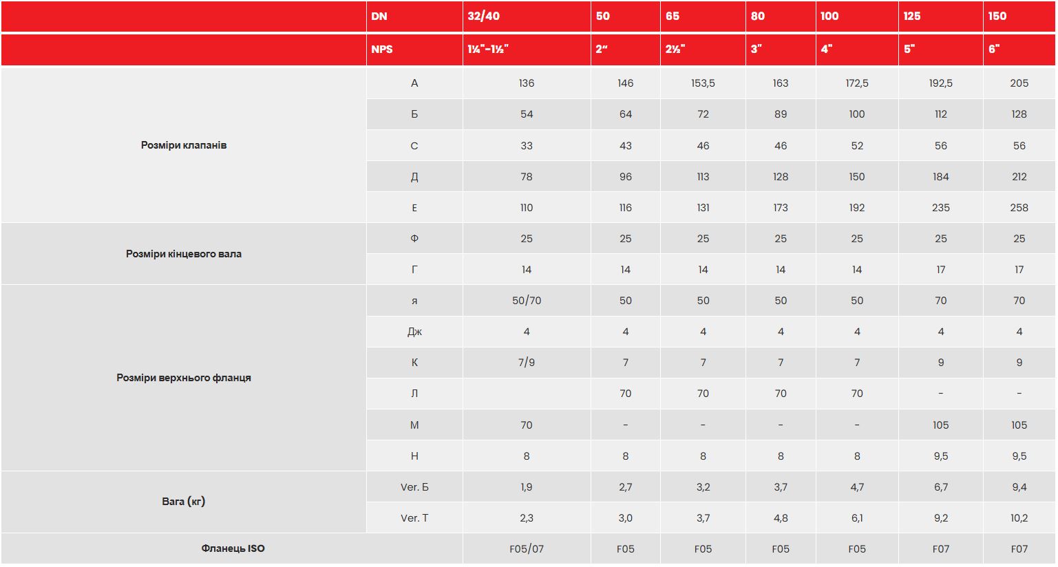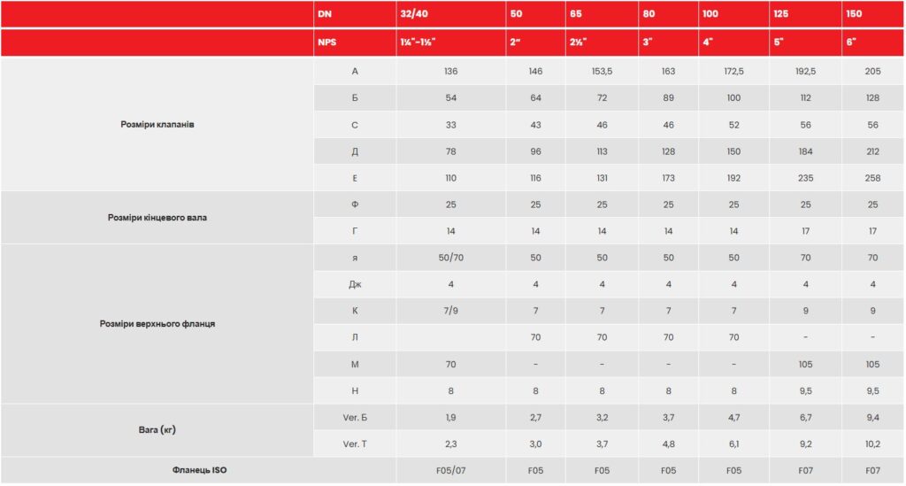 Зазначені моменти затягування дійсні лише для клапанів із сідлами з EPDM та дисками з нержавіючої сталі для рідких середовищ. Для спрацьовування клапана заявлені значення необхідно помножити на 1,2. Для місць NBR помножити на 1,4. Для газових середовищ або середовищ з абразивними частинками використовують вторинний коефіцієнт 1,35. Для посадочних місць VITON (FPM) множимо на 1,4. Щоб дізнатися про конкретні умови роботи, зверніться до виробника, щоб отримати консультацію щодо приводу.